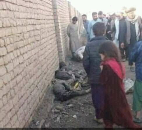 در تصاویری که از ساحه رویداد نشر شده، اجساد سوخته کودکان در گوشه دیوار دیده میشود.