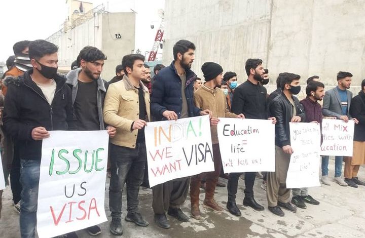برخی از محصلین که در دانشگاه های هند درس میخوانند، روز چهارشنبه ۱۳ دلو در برابر سفارت هند در کابل اعتراض کردهاند و از این کشور خواستند تا برای شان ویزای تحصیلی بدهد.