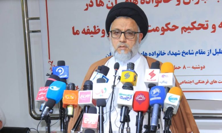 آقای مزاری گفت: اولین وظیفه حکومت در قبال خانوادههای شهدا این است که دید یک سان به همه شهدا داشته باشند تا پایههای حکومت محکم شوند و طالبان ادعا نکنند که تنها ما جهاد کرده و شهید دادیم “.