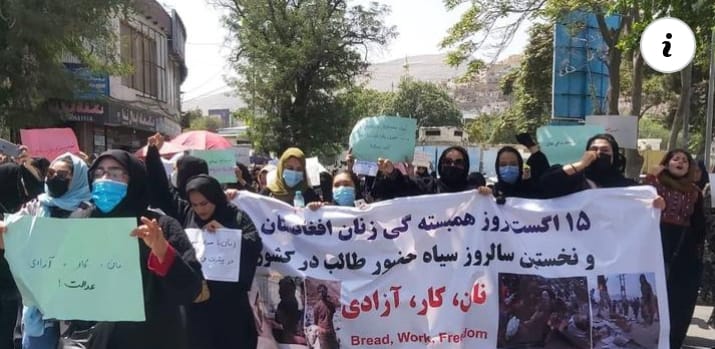 حدود ۴۰ زن روز شنبه، ۲۲ اسد و در آستانه سالگرد تسلط طالبان بر افغانستان، تظاهرات کردند و شعار «نان، کار، آزادی»